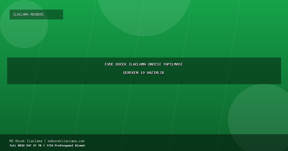 Profesyonel bocek ilaclama isleminden en yuksek verimi almak icin evde bazi hazirliklarin yapilmasi buyuk onem tasir. Hazirlanan ortamda ilac daha etkili yayilir, hasere yuvalarina daha kolay ulasir ve sonuclar cok daha kalici olur. Hazirlik yapmadan gerceklestirilen ilaclama islemlerinde etkinlik %30-40 oraninda dusebilir. Bu nedenle asagidaki adimlari uygulamaniz profesyonel ekibimizin isini kolaylastiracak ve size daha iyi sonuc getirecektir.